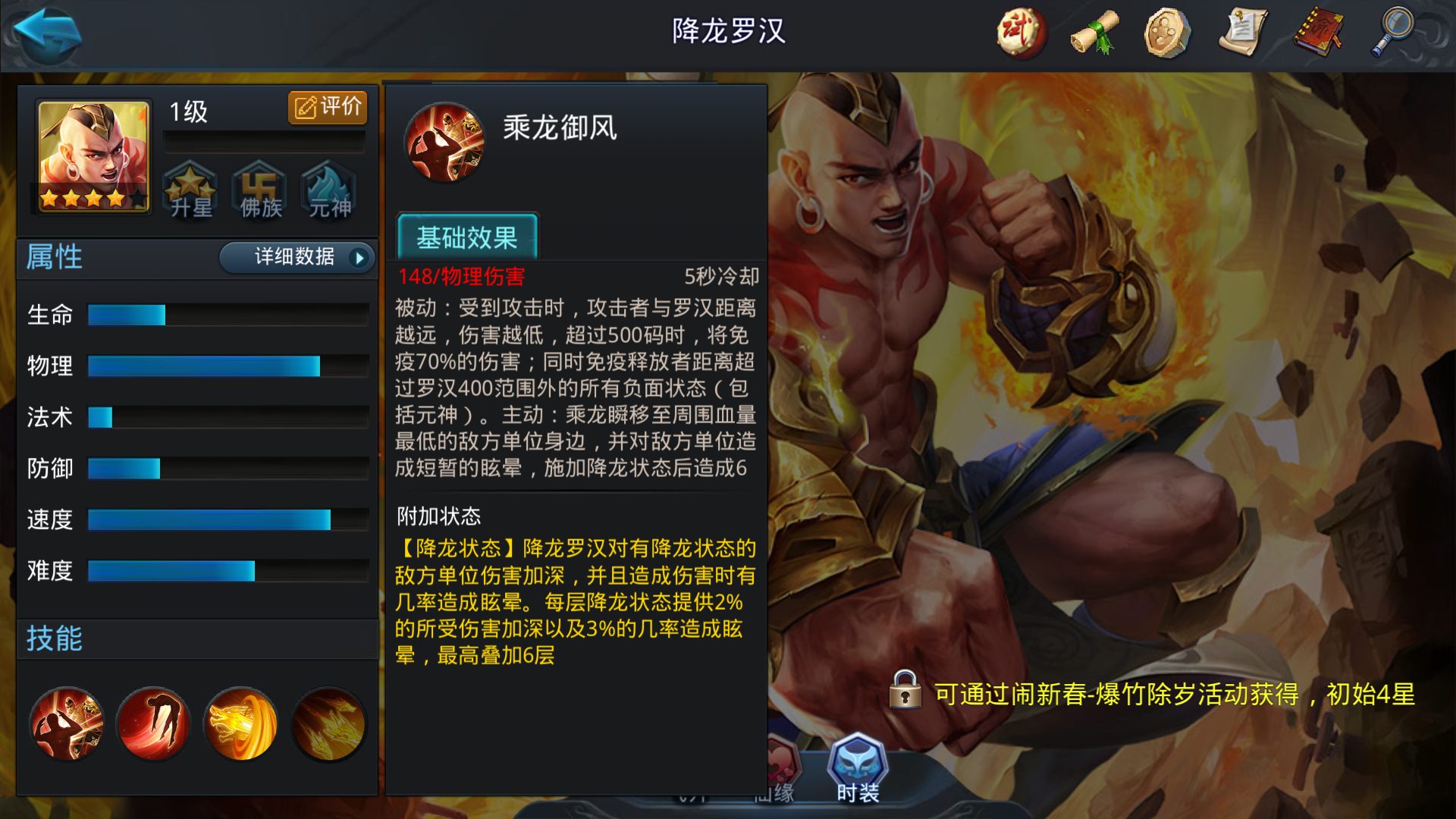 降龙罗汉是一位极具威胁的先手控制型战士,他的技能组合包括高频...