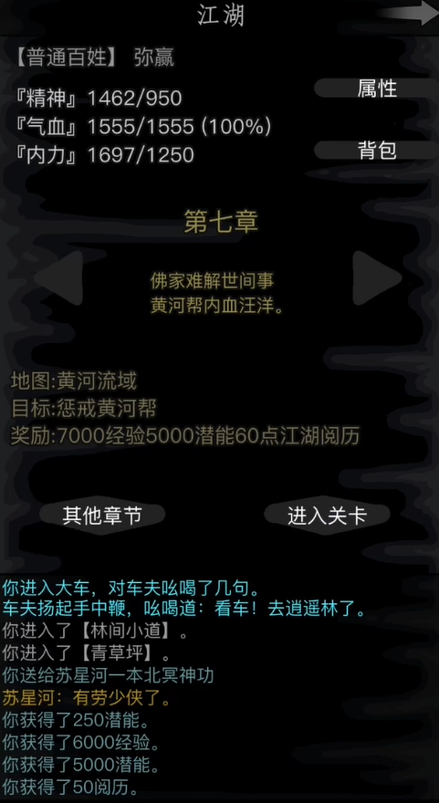 学基本鞭法最开始能找到的地方是第七章黄河流域,你到了侠义厅那...