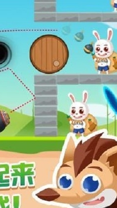 游戏采用横版视角,玩家扮演灰太狼角色,面对藏在木箱、木板、高台等各类掩体后的小兔兔展开射击。每关目标明确,清空所有小兔兔即可解锁下一关卡。操作上,左侧虚拟摇杆控制炮弹的发射角度与力度,右侧按钮执行发射,屏幕会显示预判弹道,帮助玩家校准落点。地图设计融入多种互动元素,如可破坏木箱、反弹钢板、传送门、重力区域等,部分关卡需要利用炮弹反弹多次或触发机关间接炸飞小兔兔。除常规关卡外,设有彩蛋关卡与特殊挑战,完成后可解锁限定角色皮肤与强力技能,养成线围绕角色收集、技能升级与道具解锁展开,逐步提升闯关效率。