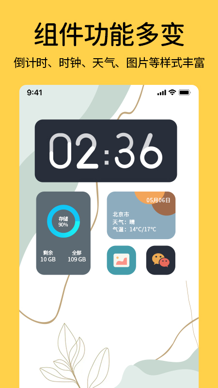 在这里你会发现超多惊喜功能,从基础的时间管理到生活辅助一应俱全。实时天气预报组件能让你随时掌握温度变化,合理安排出行计划;精美日历小组件集成了农历、节假日和星座信息,让生活规划更加便捷;照片组件支持自由组合多张心爱图片,打造专属相册墙;健康步数模块自动同步手机运动数据,设置每日目标,激励你保持活跃。还有贴心的纪念日提醒功能,用多种创意风格记录每个重要时刻,确保不会错过任何特殊日子。